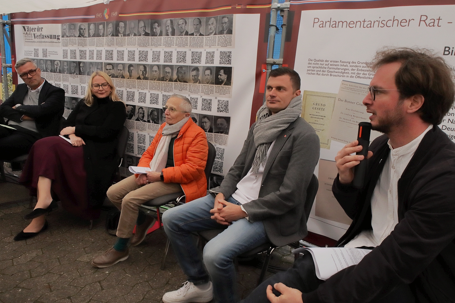 mit Christine Streichert-Clivot (Saarländische Ministerin für Bildung und Kultur) Max Hewer (GEW-Vorsitzender des Landesverbands Saarland) Ricarda Kunger (Synagogengemeinde Saar) Thomas Mann